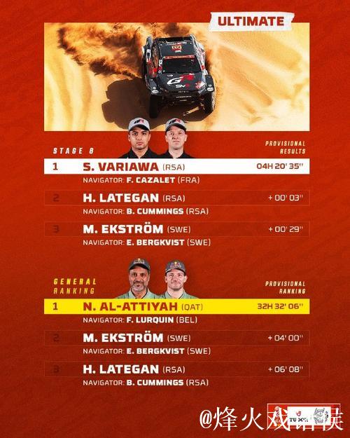 在漫漫沙海之中 第一道冲线的车灯光并不总属于经验最丰富的老将 有时也会属于敢拼敢闯的少年 当达喀尔拉力赛第八赛段的终点计时牌亮起那一刻 一位05后小将夺得赛段冠军的画面 让许多观众意识到 这项被誉为“